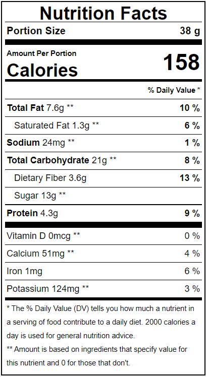 Ingredients: Vegan Dark Chocolate (cane sugar, cocoa mass, cocoa butter, vanilla), Slivered Almonds, Cocoa, Almond Butter, Honey, Gluten Free Oats, Chia Seeds, Espresso, Chocolate Plant Based Protein Powder